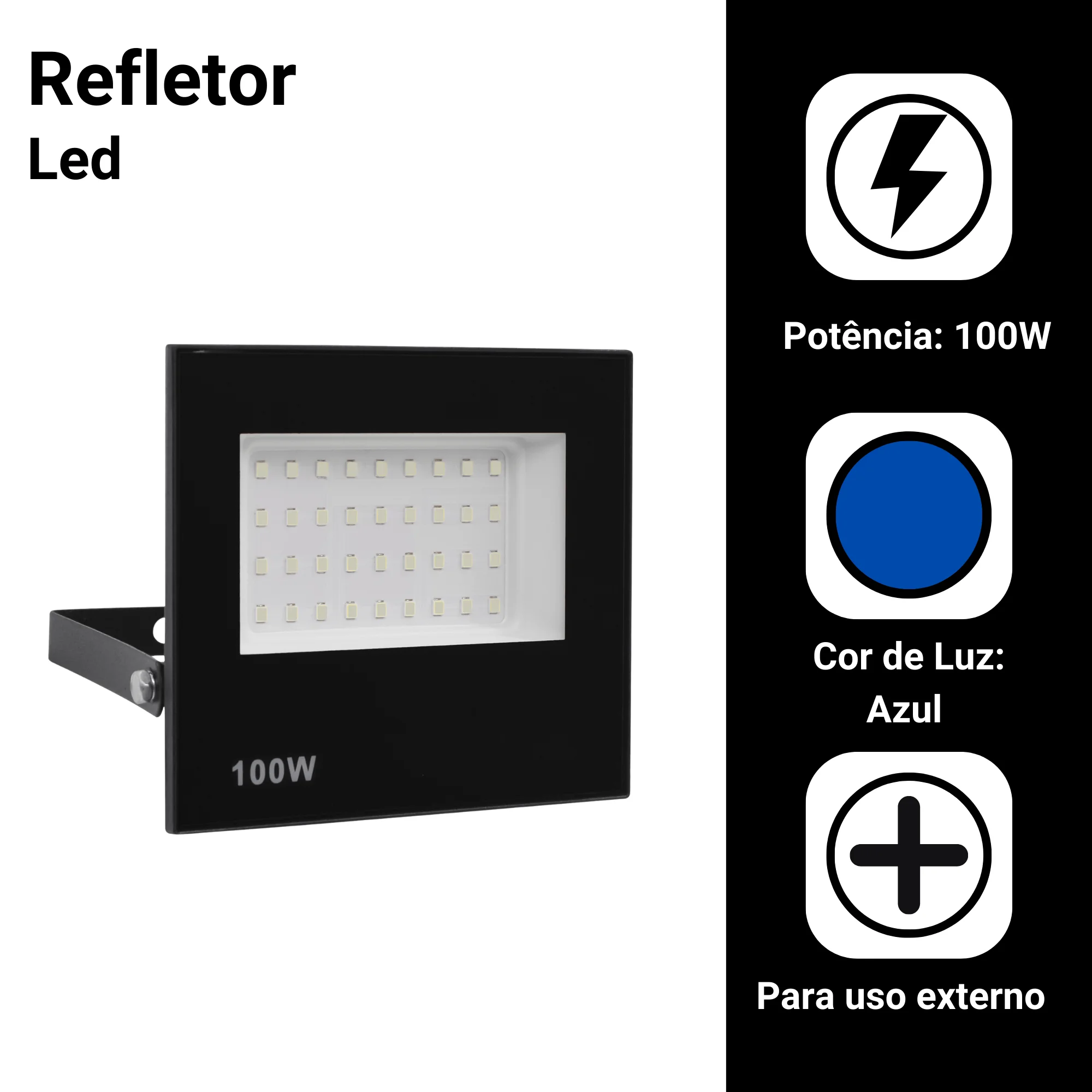 Transforme qualquer ambiente externo em um verdadeiro espetáculo de luz com o Refletor LED 100W Luz Azul, a escolha de quem busca potência, beleza e durabilidade em um só produto.